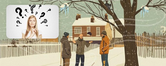 Nuotraukoje matosi trys kiemsargiai, kurie žiemą susirinko kieme po medžiu ir pradėjo kalbėtis. Nė vienas pašnekovas net nepastebėjo, kad vienam iš jų gresia rimtas pavojus.