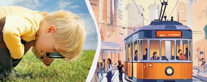 Nuotraukoje pavaizduota judri gatvė, kuria vaikšto žmonės ir važiuoja įprastas tramvajus. Turite nustatyti laikmatį penkioms sekundėms ir rasti trūkumą prieš pasibaigiant laikui. Ar tu pasiruošęs?
