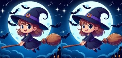 Taigi, ar esate pasiruošę kitam iššūkiui? Atidžiai pažiūrėkite į du jaunos raganos, skraidančios ant šluotos koto, atvaizdus. Iš pirmo žvilgsnio abi nuotraukos atrodo identiškos. Tačiau iš tikrųjų tarp jų yra du skirtumai, ir jūsų užduotis yra juos surasti per 11 sekundžių. Išbandykite šį galvosūkį ir patikrinkite, koks aštrus jūsų regėjimas!