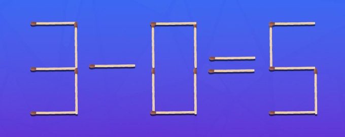 Iš tikrųjų tai gana paprasta. Pažvelkime į viską žingsnis po žingsnio. Nebuvo prasmės pridėti degtuką prie ženklo, nes 3+0 būtų lygus 3, o degtuko negalima perkelti iš 5.