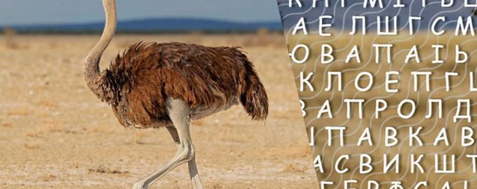 Tarp chaotiškai išdėstytų raidžių paslėptas žodis „strutis“. Jums reikia rasti žodį „strutis“ per 10 sekundžių / Moje koliažas, nuotrauka depositphotos.
